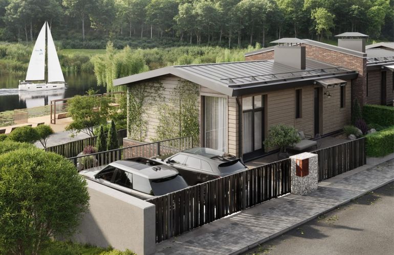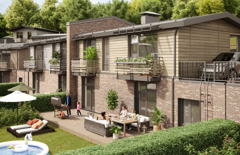 Монолитные дома с фасадами из кирпича и натурального дерева обеспечивают сочетание надежности, энергоэффективности и экологичности. Такое сочетание материалов гармонично вписывается в природное окружение проекта.