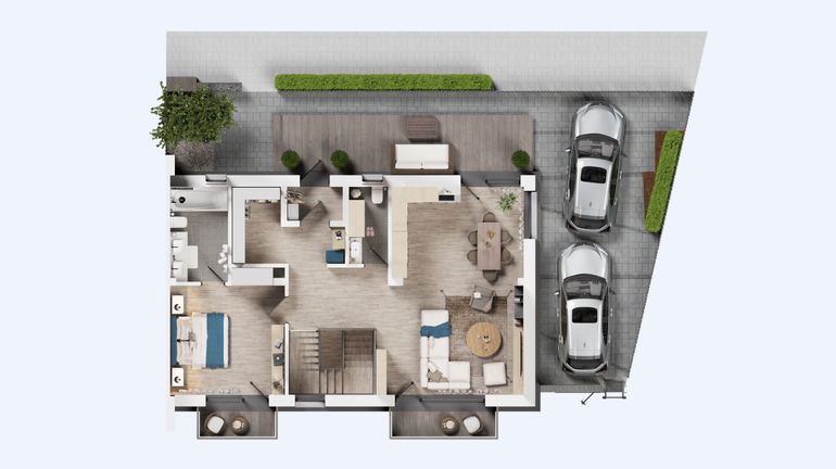 Каскад дуплексов является продолжением комплекса Прайм квартала "Отрада на реке", растянувшегося почти на километр вдоль реки Синичка. Архитектор проекта вписал двухэтажные дома в природный ландшафт таким образом, чтобы из каждого юнита открывались панорамные виды на реку и лес.